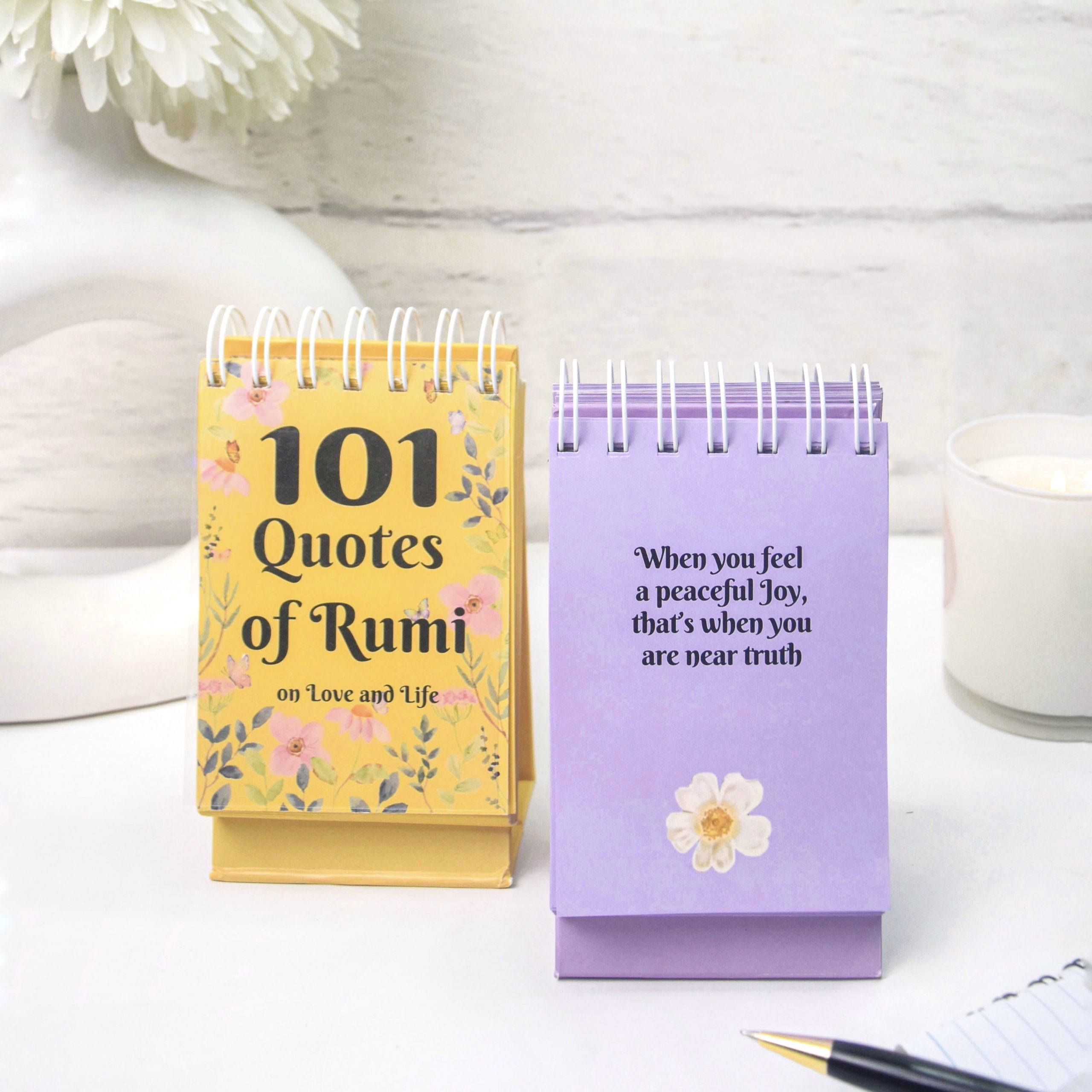 Discover 101 thoughtfully curated cards, each adorned with profound quotes on love and life from the great poet Rumi.